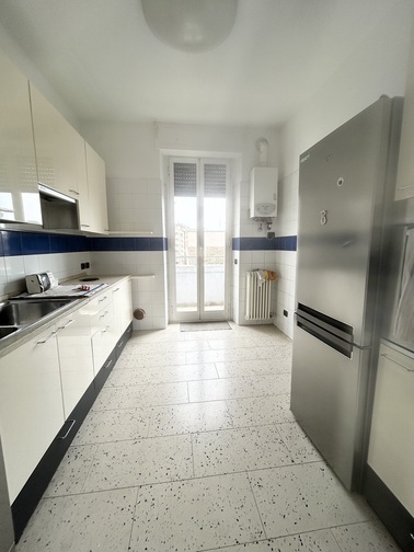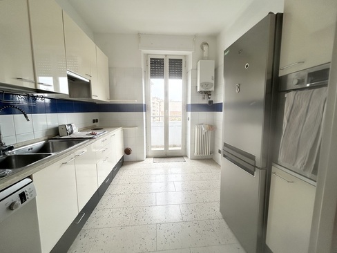 Comodissimo trilocale con ampia sala collegata ad un terrazzo panoramico, cucina abitabile con terrazzino su interno, due camere da letto, di cui una con cabina armadio, bagno doppio e ripostiglio lavanderia.